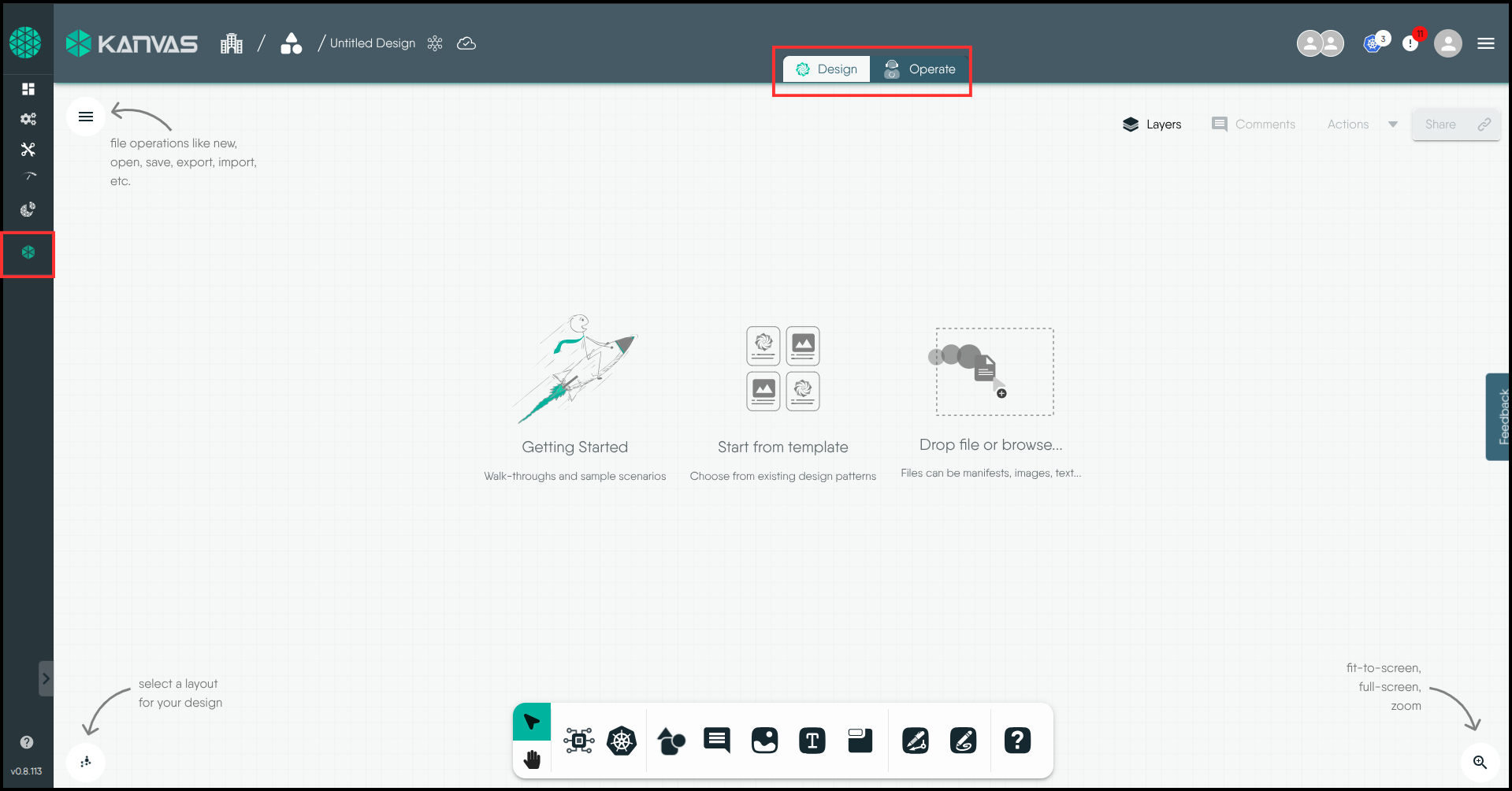Think of Designer mode as your blueprint studio. Just like architects use specific tools to design buildings, you use Kanvas to design your cloud-native applications.